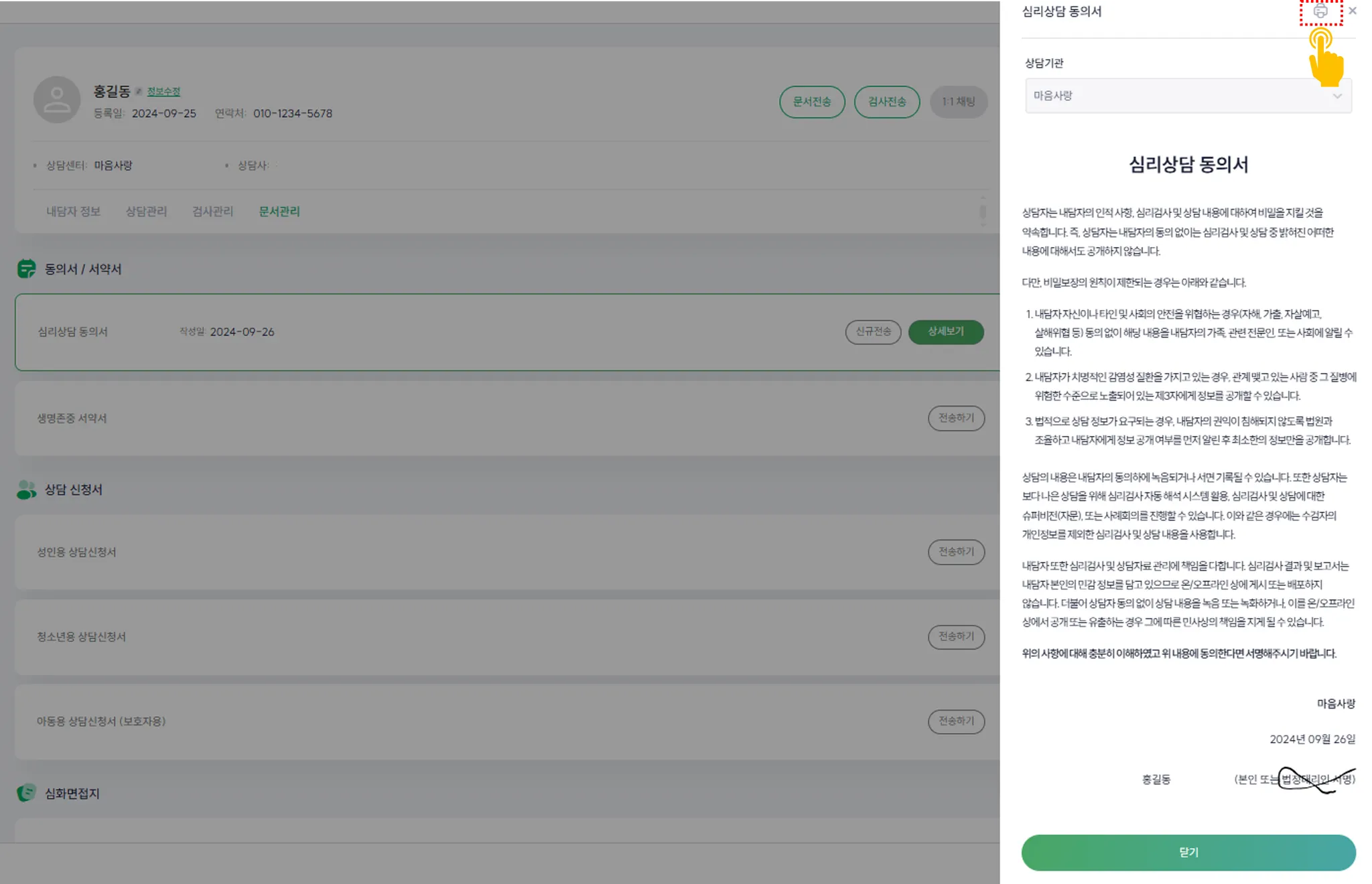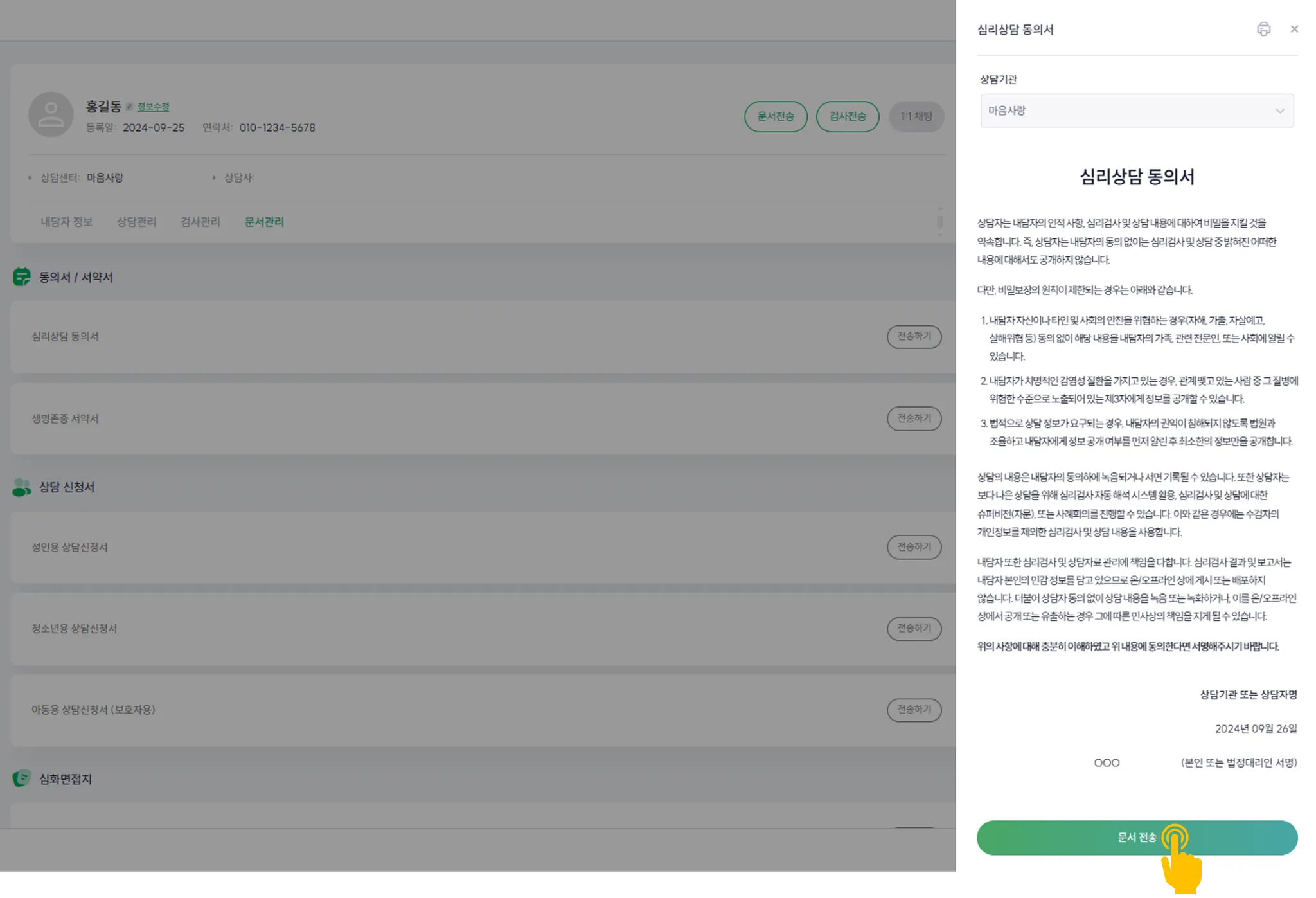 문서 내용을 확인한 후, 내담자에게 전송하세요.