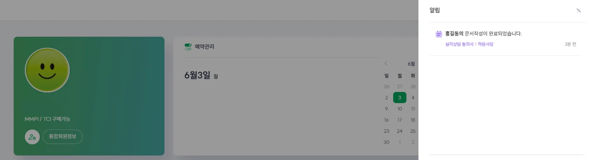 내담자가 문서 작성을 완료하면 알림이 울려요.