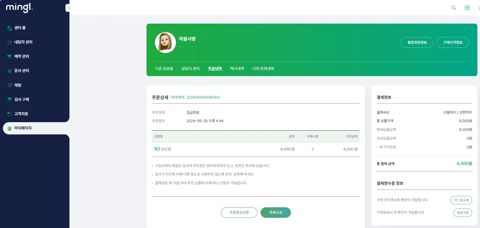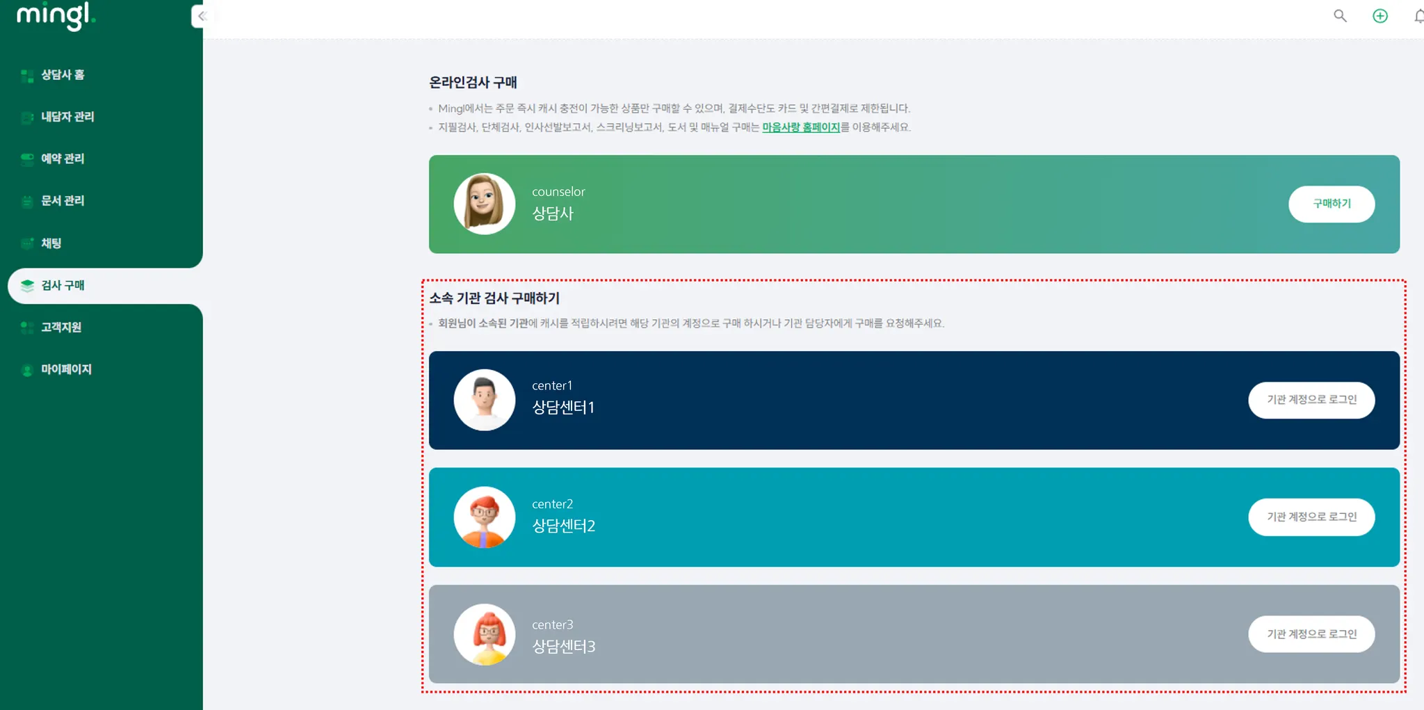 개인 ID로 로그인하였지만, 상담사로 소속된 기관 ID로 검사를 구매하고 싶을 때