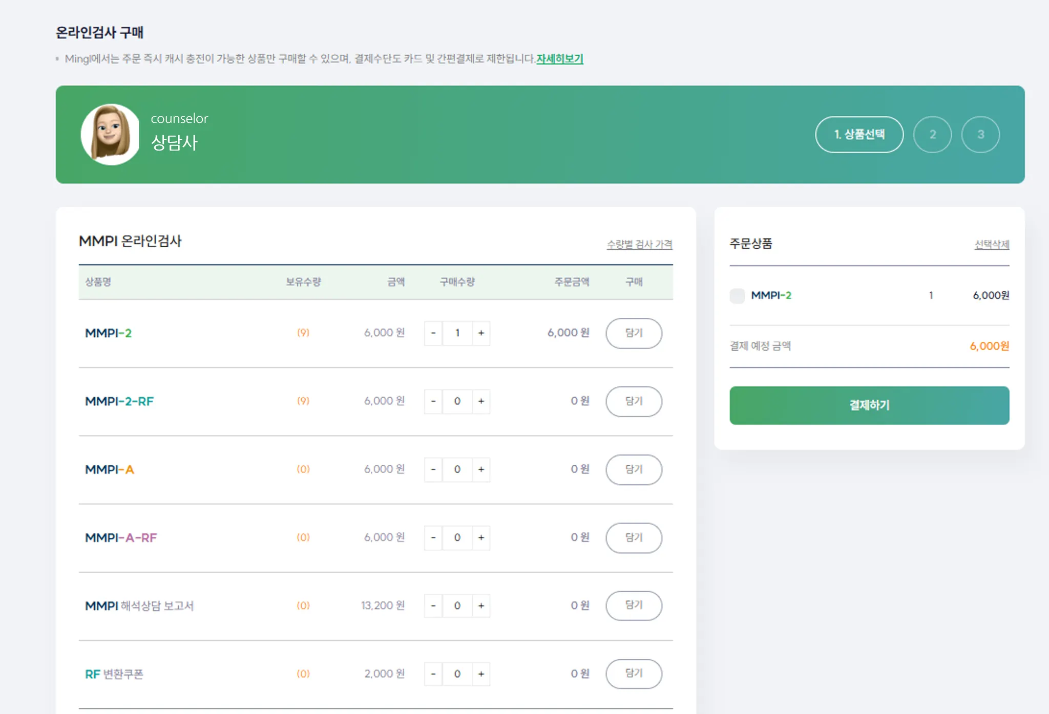 밍글에서도 마음사랑의 MMPI, TCI 검사와 해석상담 보고서를 구매하실 수 있어요.