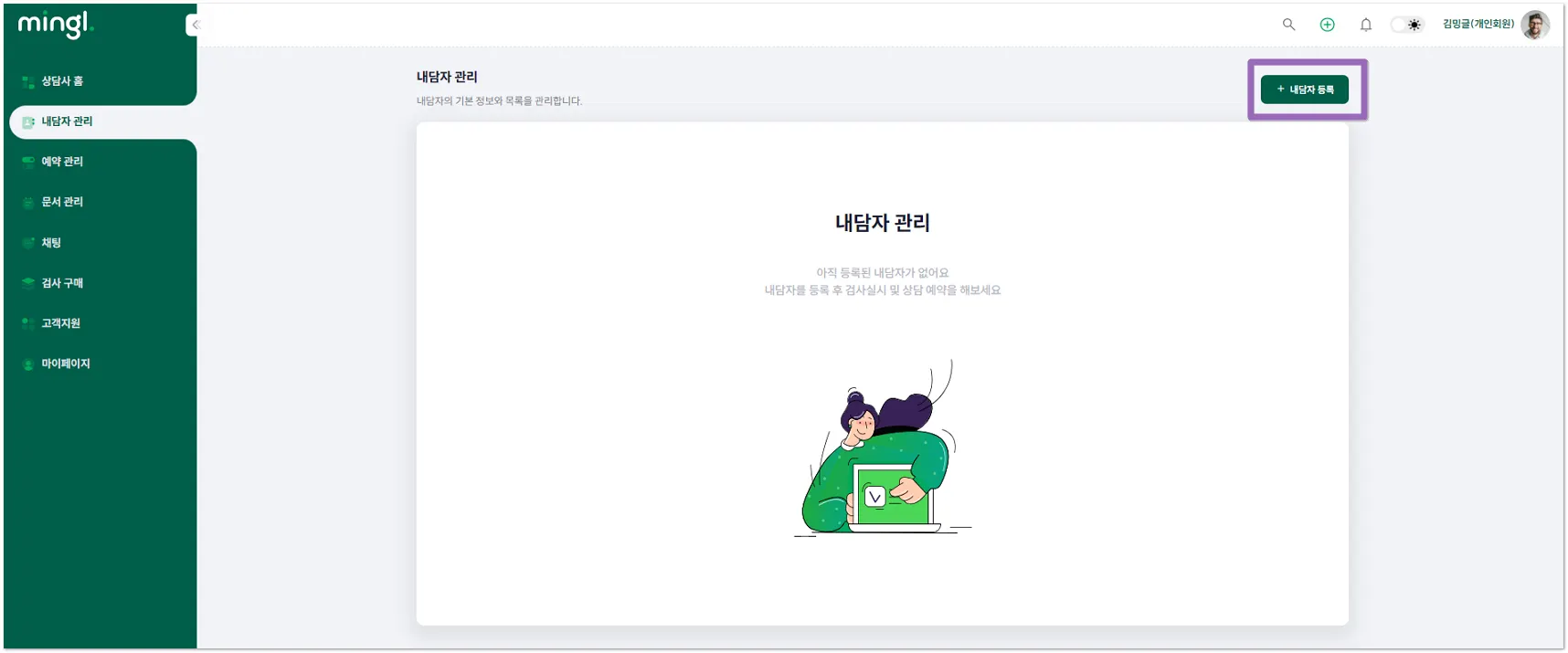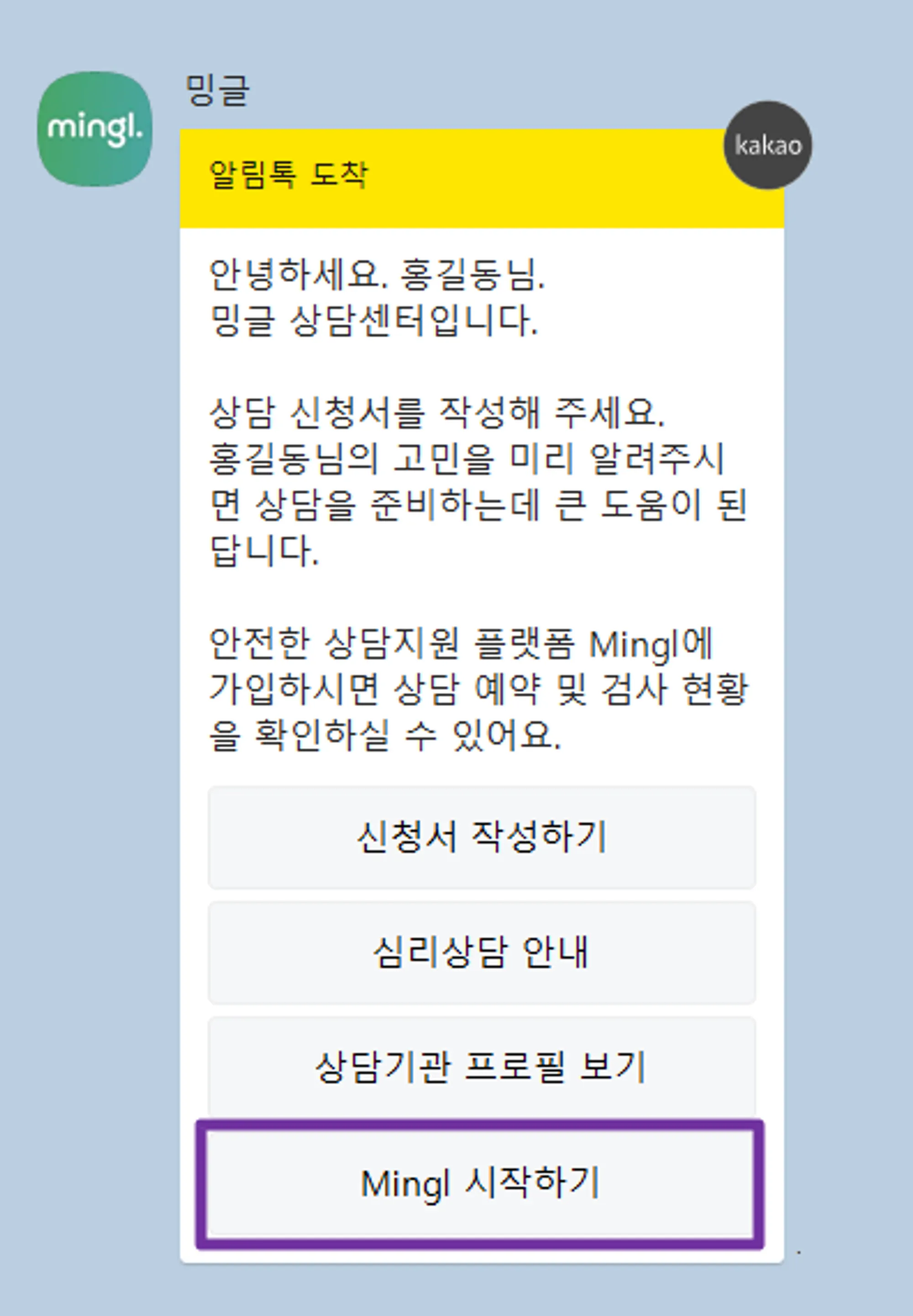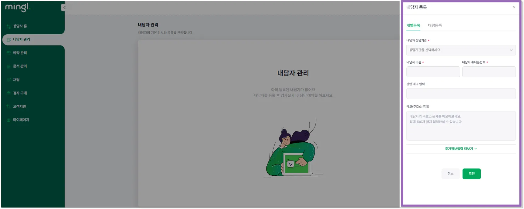 내담자가 밍글에 가입하면 더 편리하게 서비스를 이용할 수 있어요~