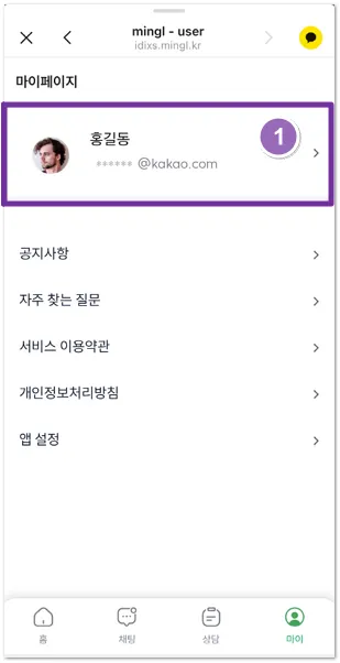 1) 마이페이지에서 나의 프로필을 클릭합니다.