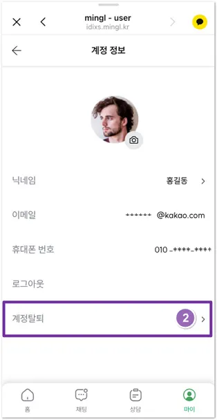 *밍글 내담자 회원을 탈퇴하시면 그간의 상담이나 검사 이력을 더 이상 확인하실 수 없어요.