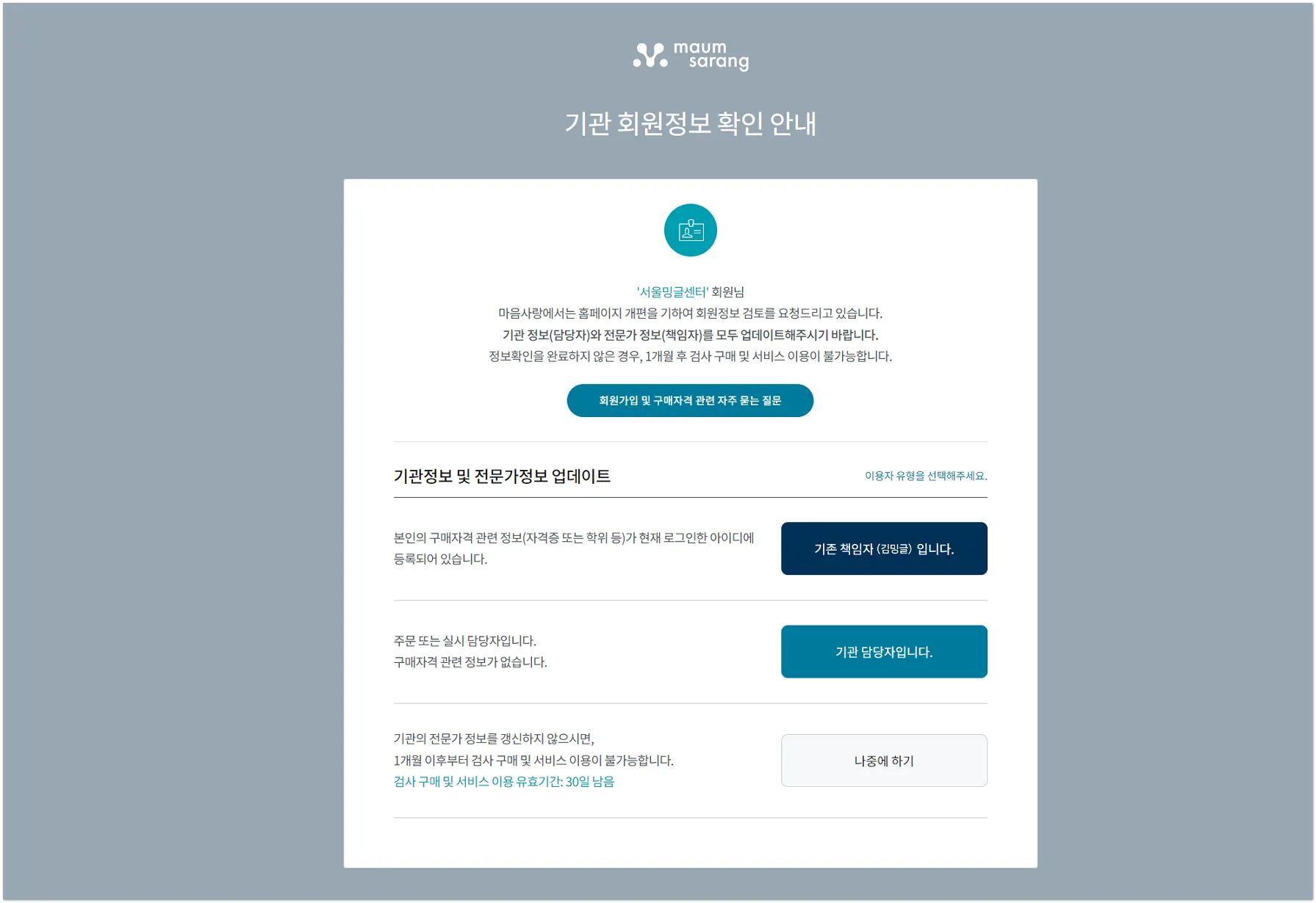 기관회원 ID로 로그인한 사람이 누구인지에 따라 회원 정보 업데이트 순서와 내용이 달라요.