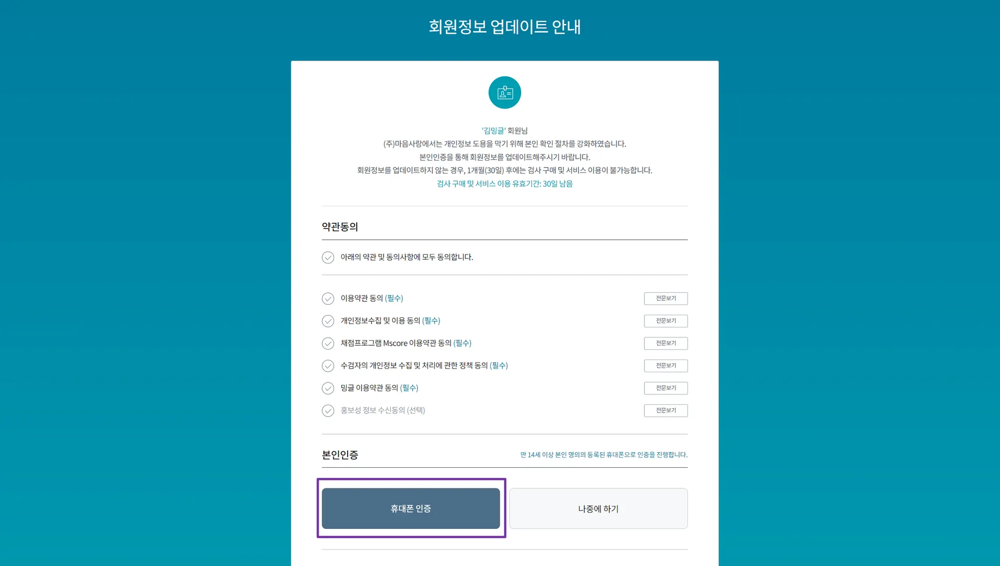 [회원정보 갱신하기] 버튼을 클릭해 주세요.
