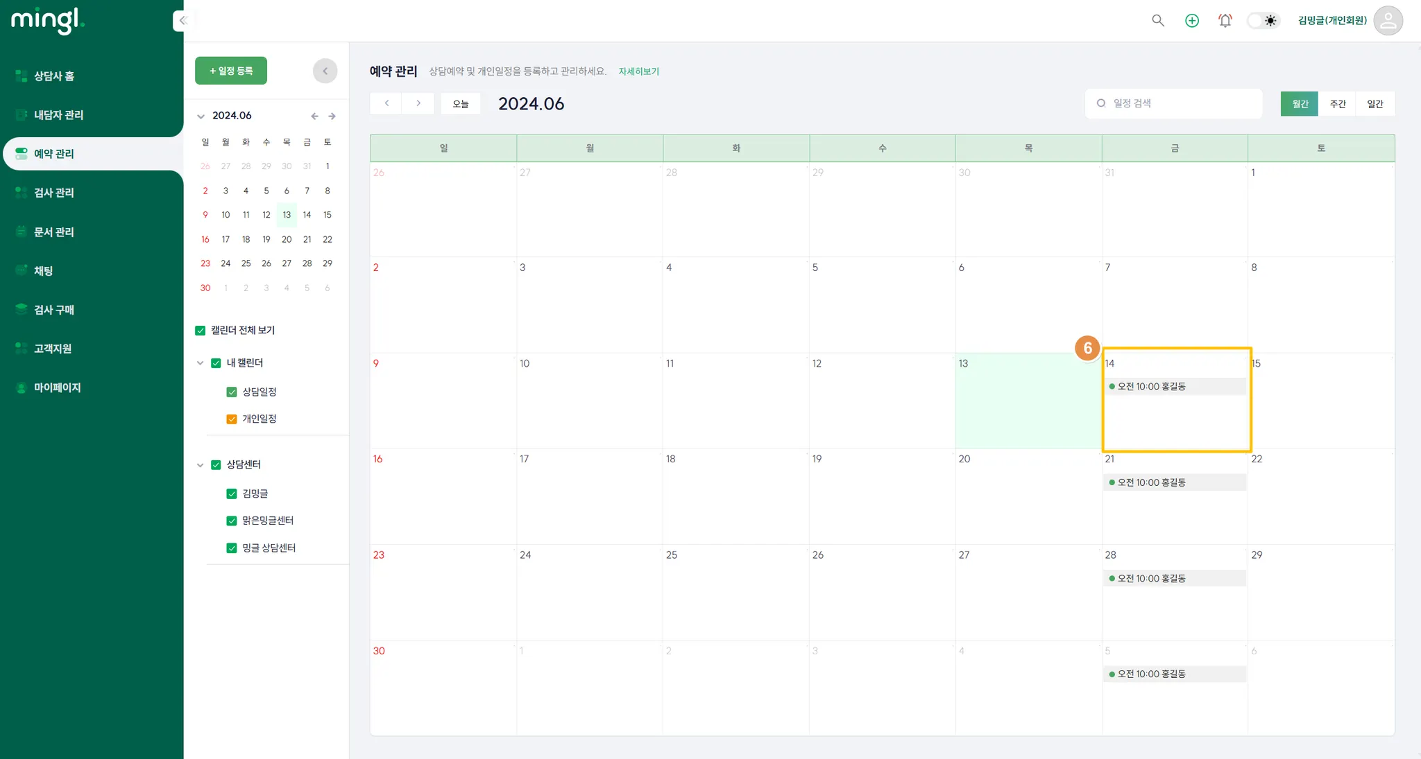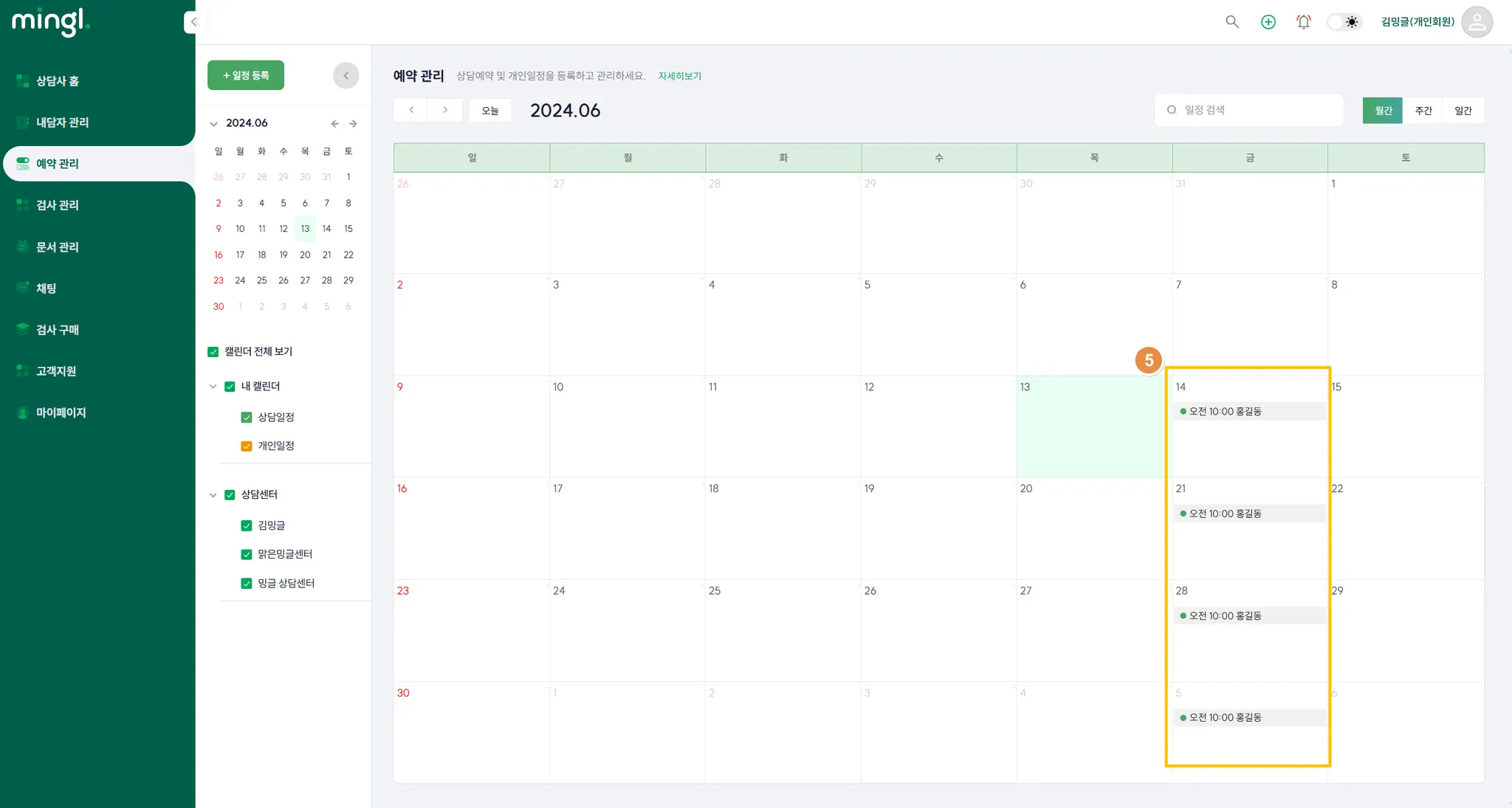 5) 예약이 완료되면 캘린더에 표시됩니다.