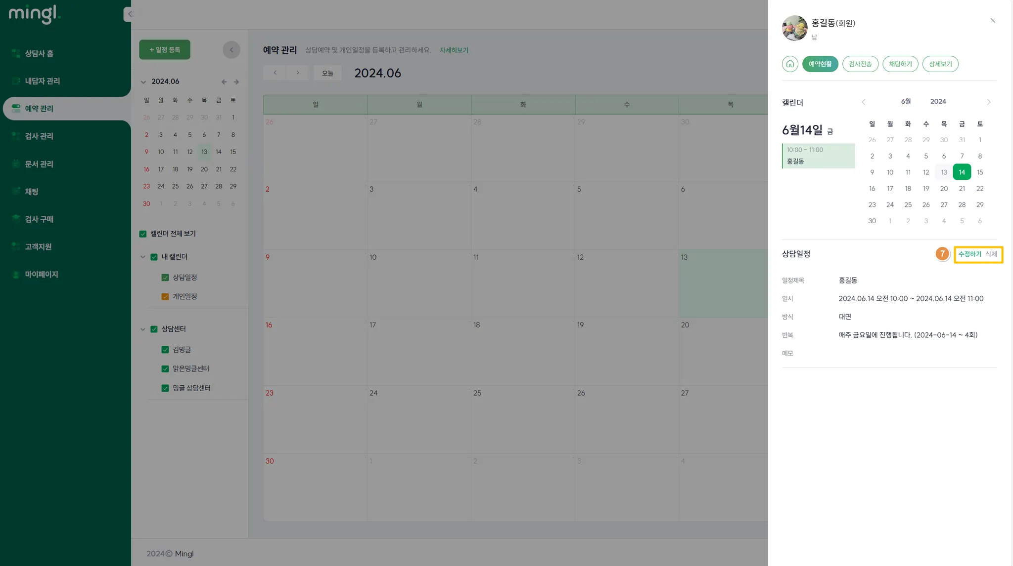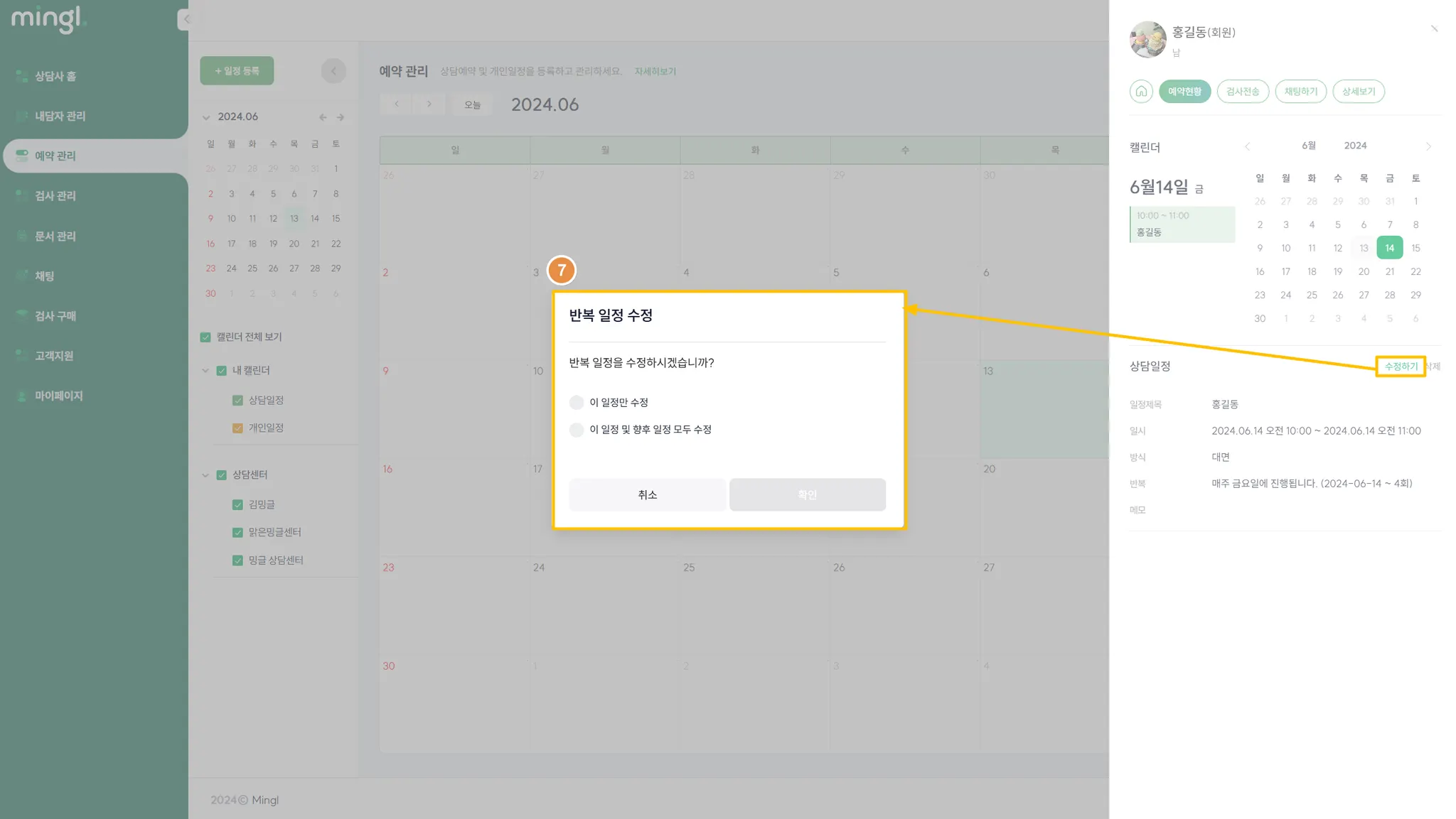 6) 예약을 수정하고 싶으신 경우 해당 날짜를 클릭해 주세요.