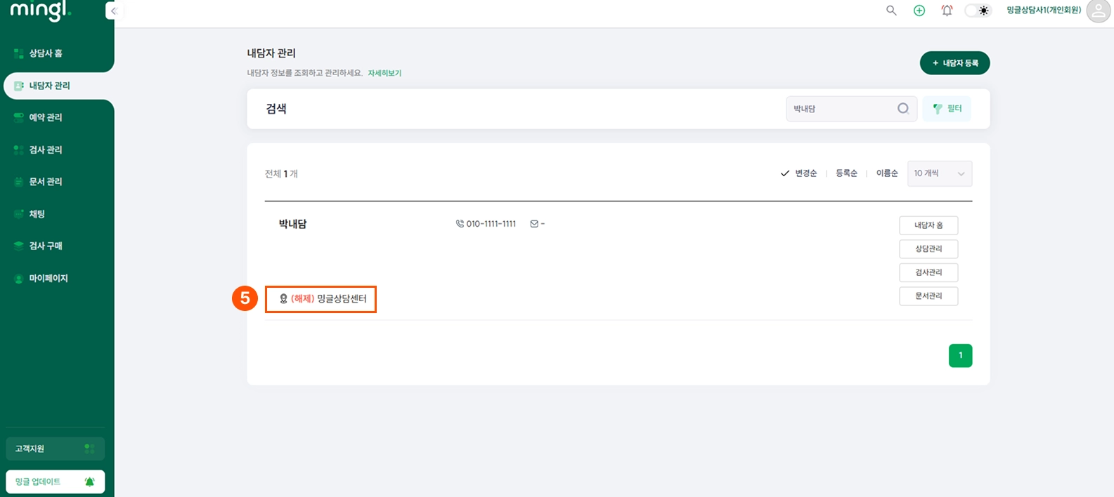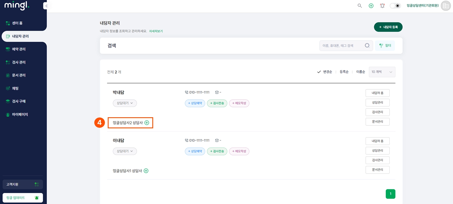 4) 담당 상담사가 변경된 것을 확인할 수 있습니다.