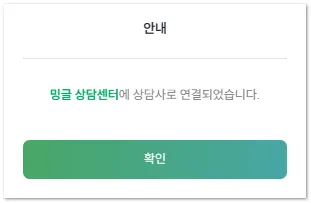 단, 상담사 연결과 별도로 회원정보 갱신, 밍글 약관동의 절차가 완료되어야 합니다.