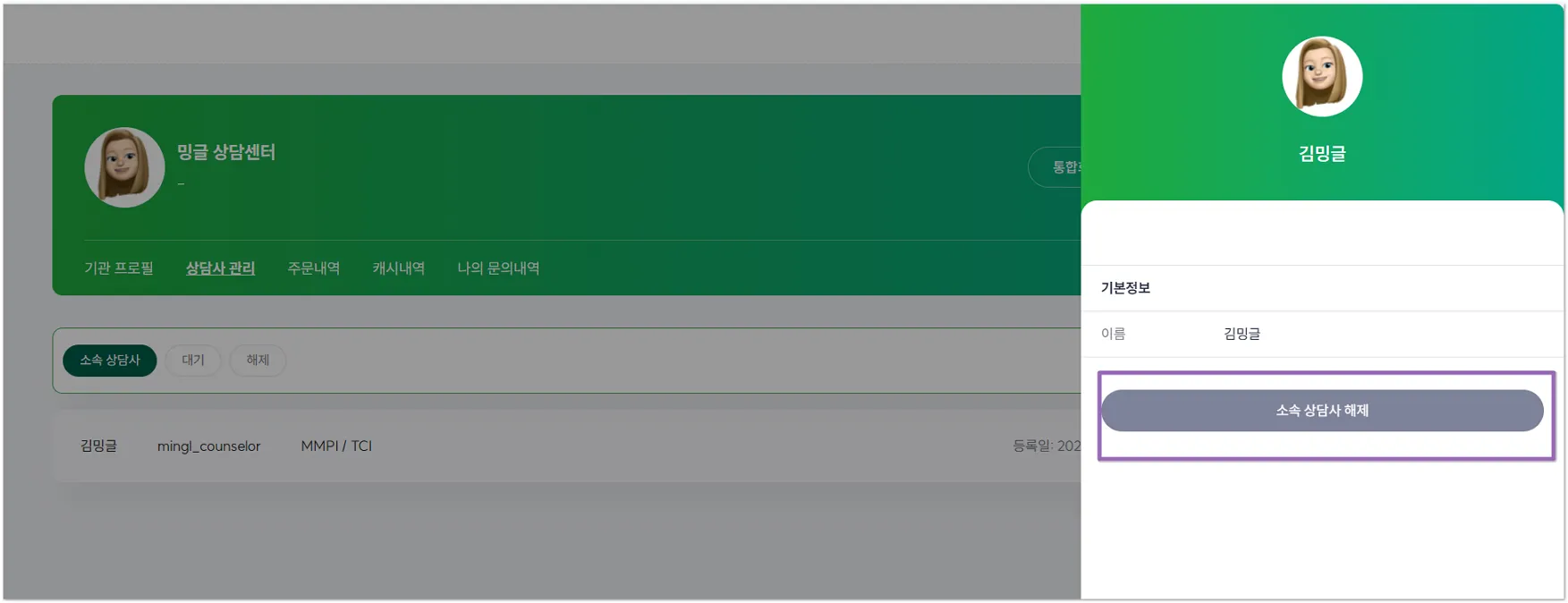 3-1. 기관에서 상담사를 해제하는 방법