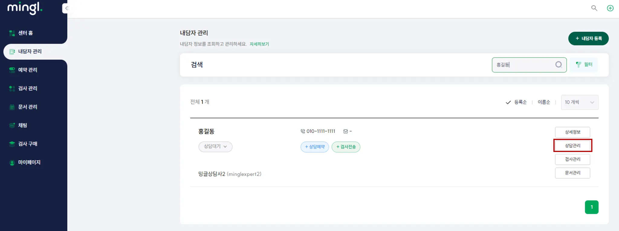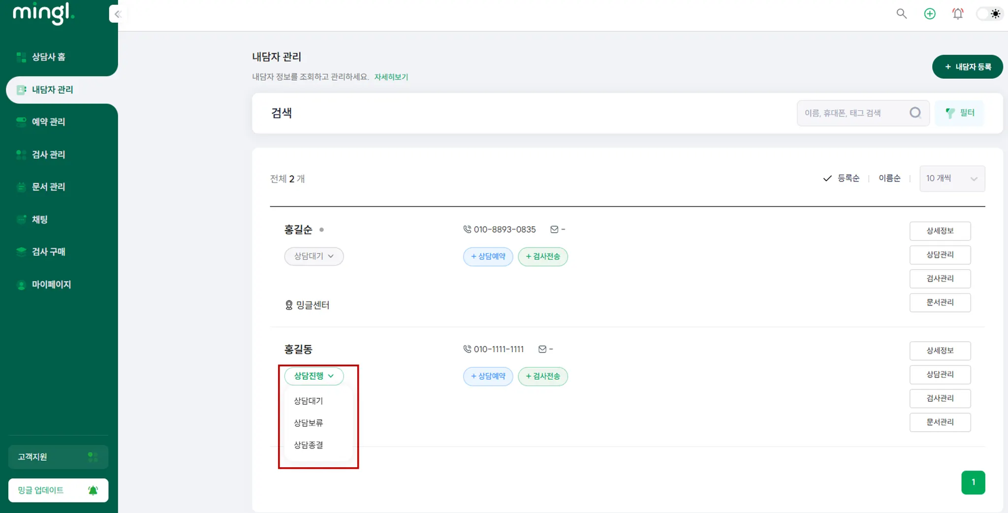 현재 진행되고 있는 상담 현황을 내담자 목록에서 손쉽게 확인해 보세요.