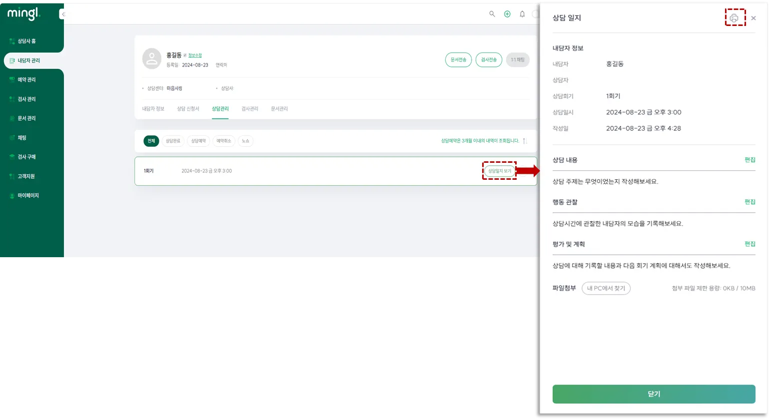 상담 일지를 출력물 형태로 보관해야 한다면, 상담 일지를 출력해보세요.