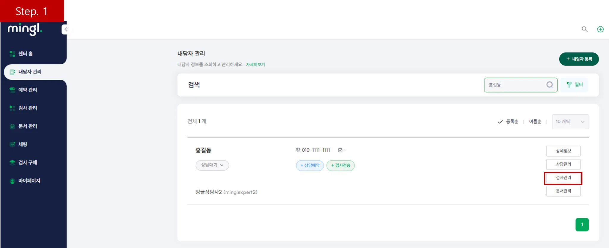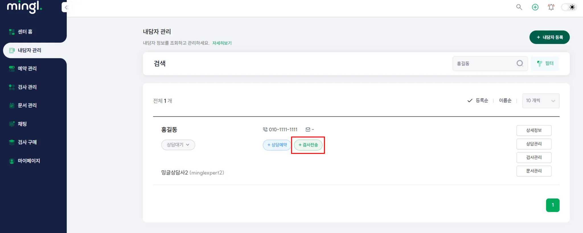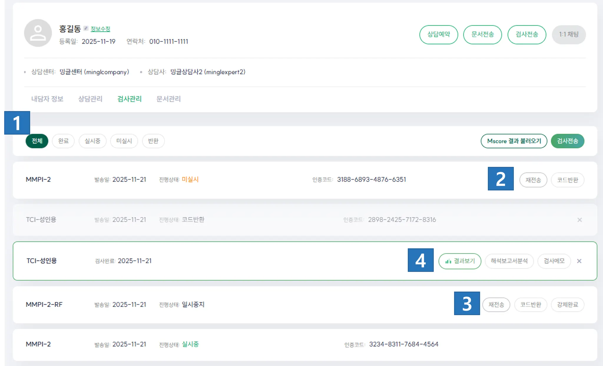 내담자의 검사 관리 페이지에 들어가세요.