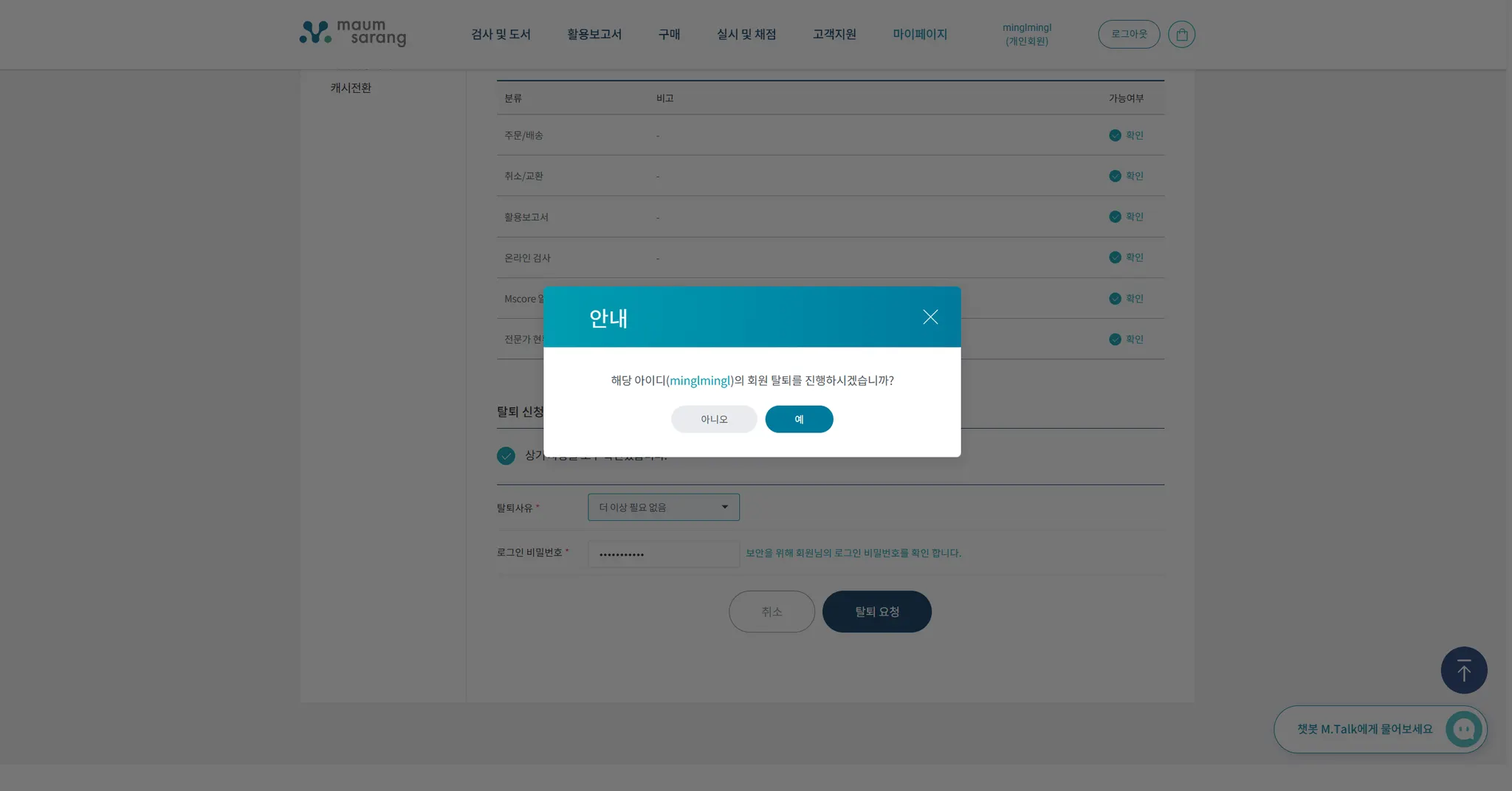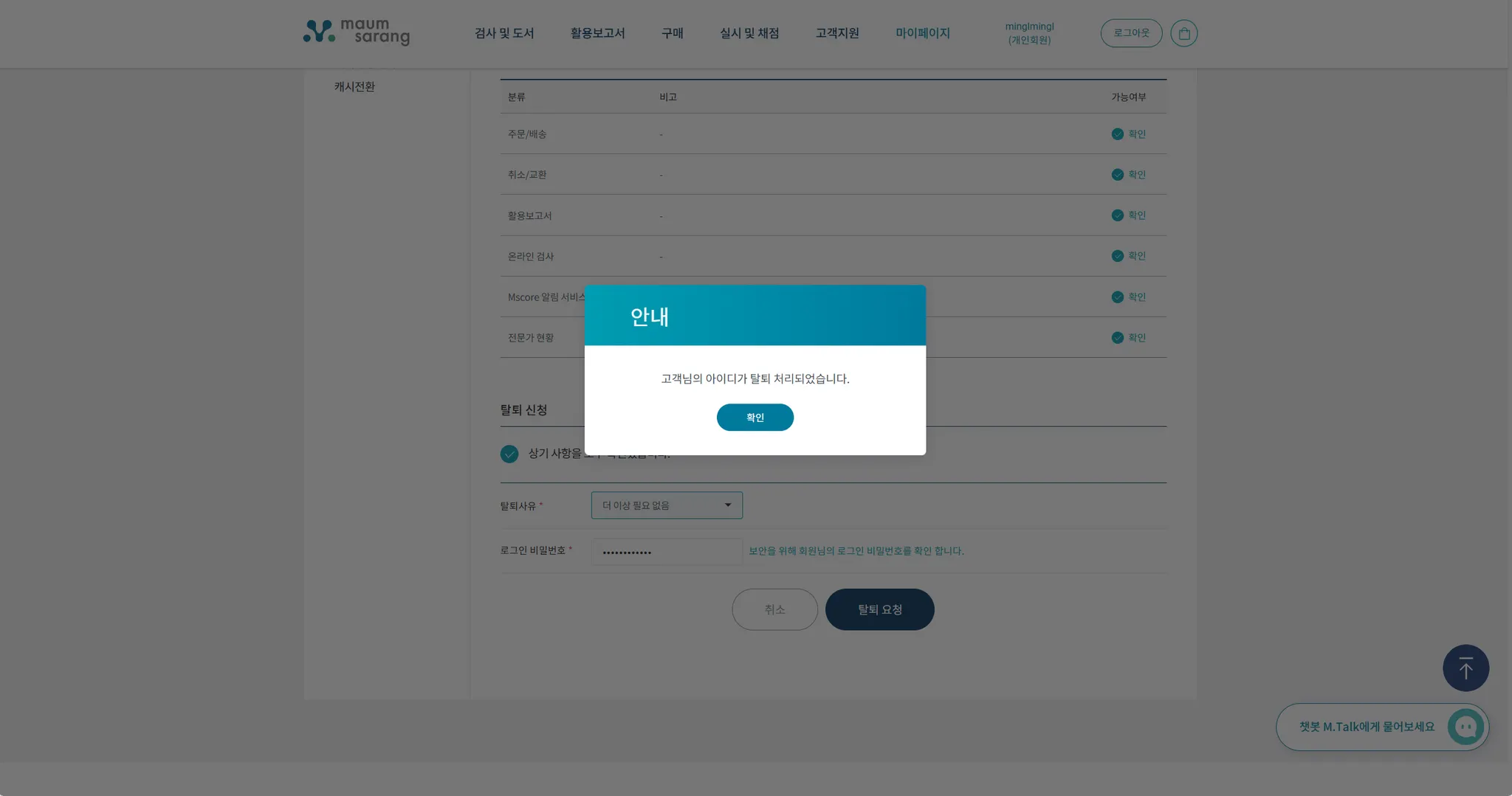 8) 탈퇴 최종 확인 후 처리가 완료됩니다.