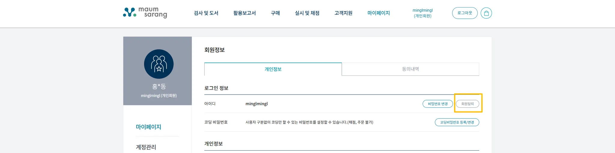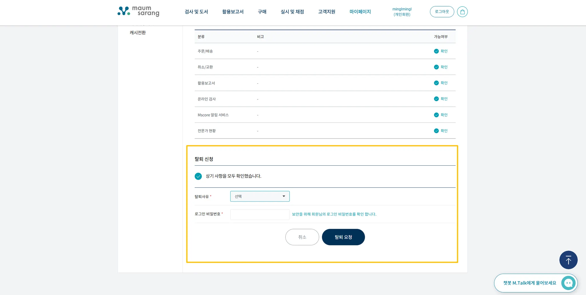 내담자를 등록한 적이 있는 밍글 회원이라면 탈퇴에 앞서