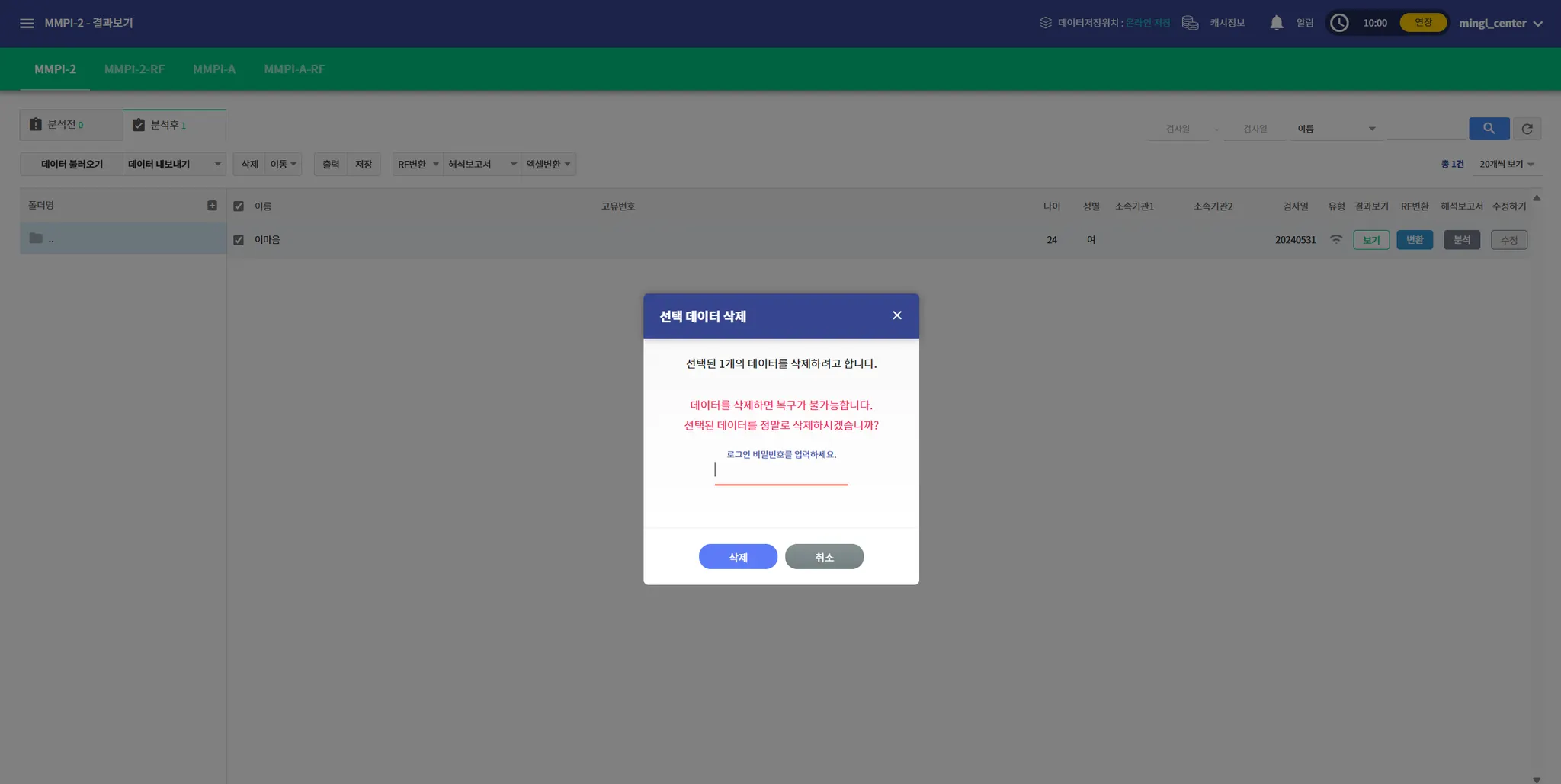 개인 ID에 등록된 내담자 데이터를 삭제하는 방법