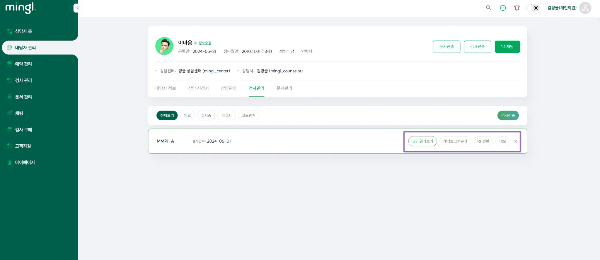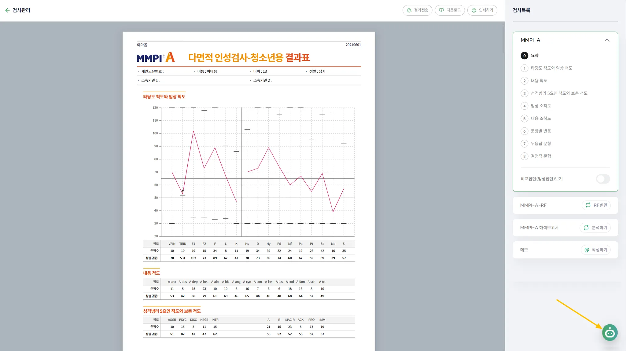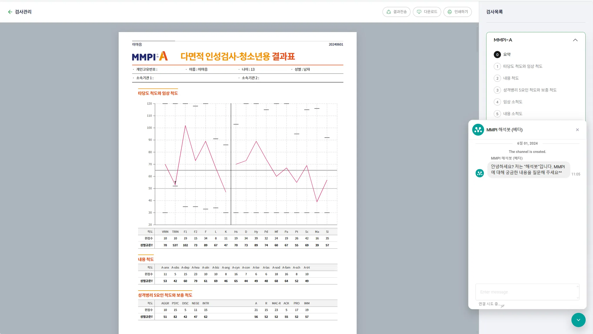 *MMPI, TCI 해석봇 이용이 가능해요.