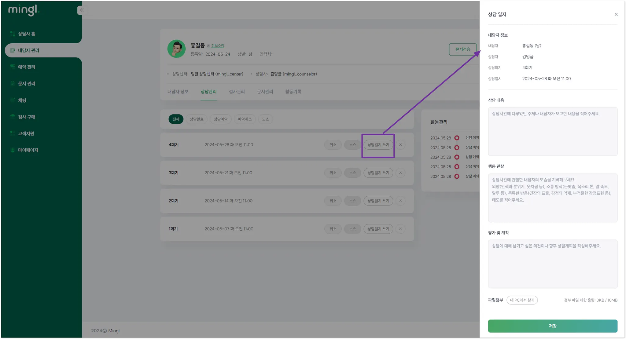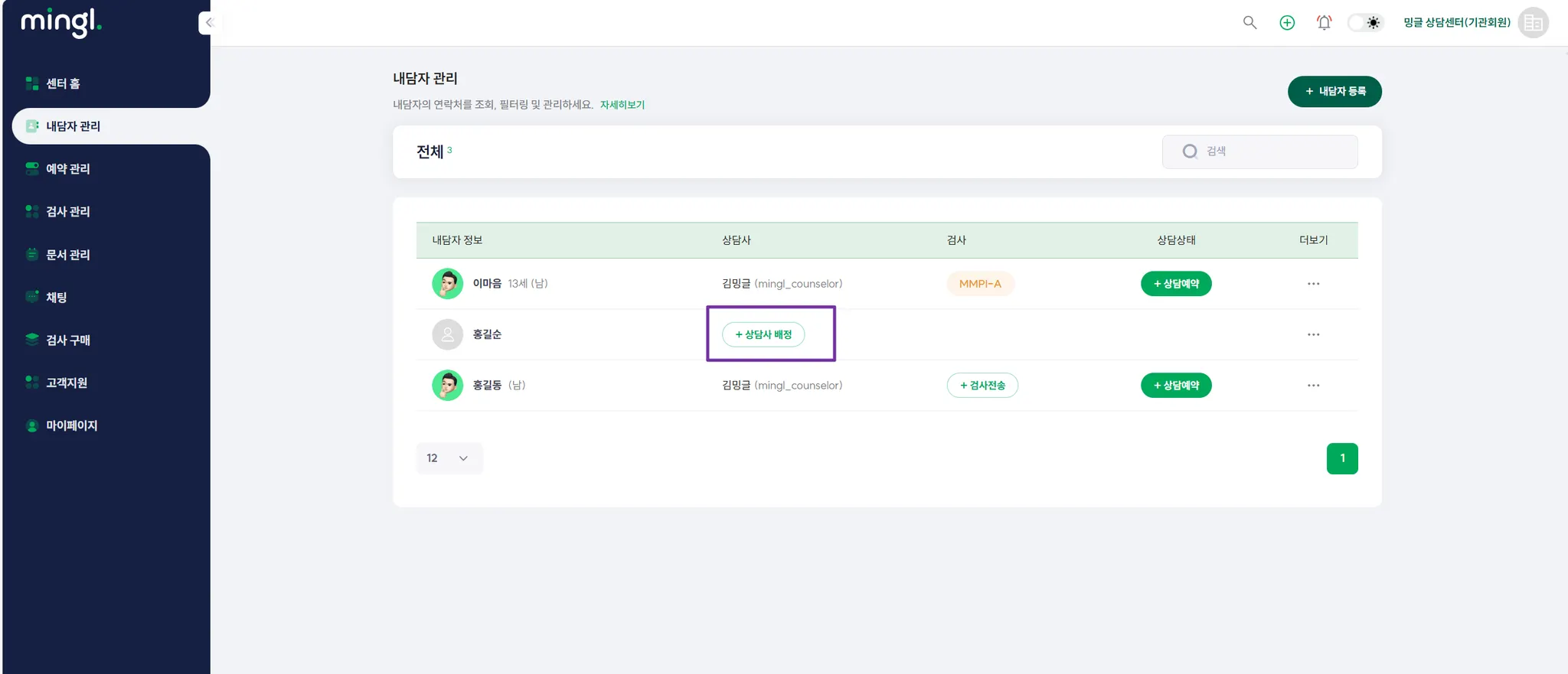 *내담자를 소속 상담사에게 배정할 수 있어요.