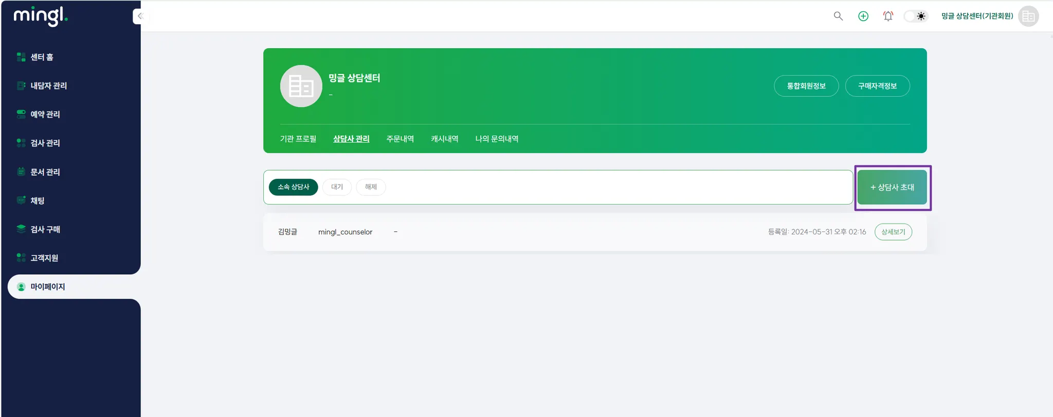 1) 기관에 상담사를 초대, 등록할 수 있어요.