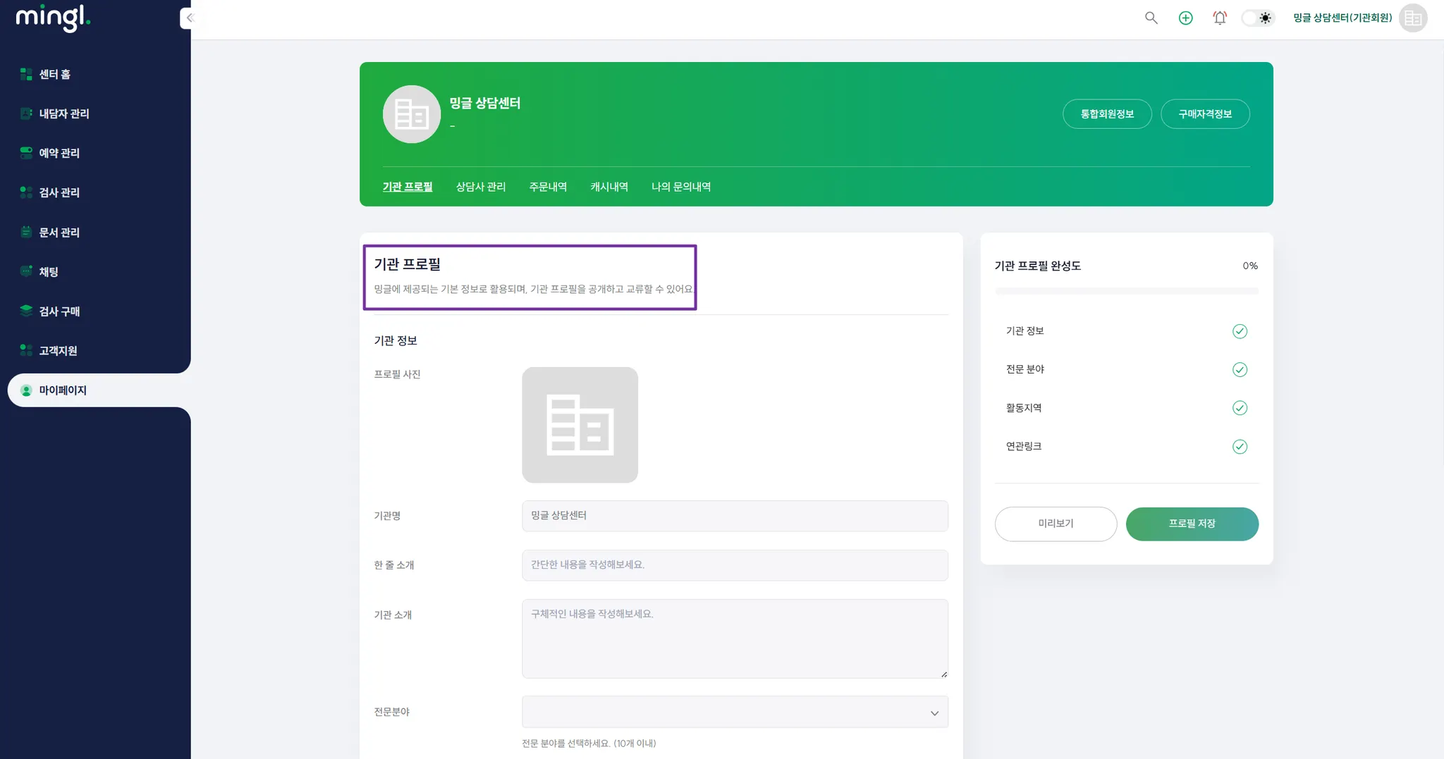 *기관 프로필을 등록하고 내담자에게 공개할 수 있어요.