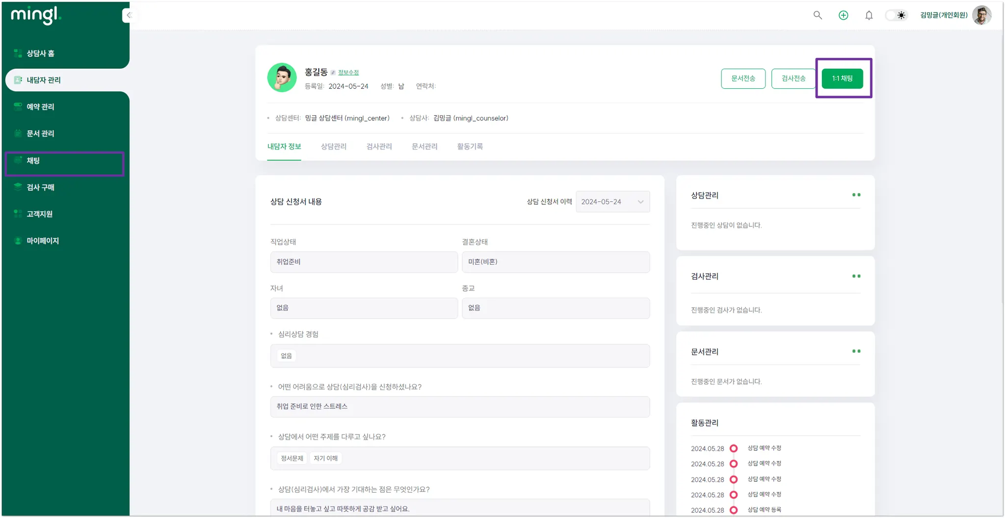 2) 내담자와 채팅으로 소통할 수 있어요.